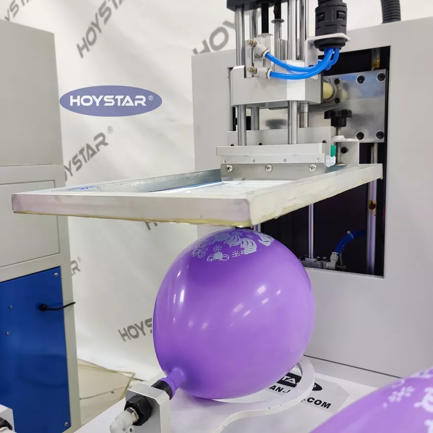 HOYSTAR е надежден производител и доставчик в Китай; Тази машина за ситопечат с 1 цветни балони HOYSTAR с 4 станции е проектирана специално за печат с балони, тази полуавтоматична машина за ситопечат осигурява изключително качество на печат и забележителна оперативна стабилност. Оборудван е с 4 въртящи се работни маси, което прави зареждането и разтоварването на балони много лесно и гладко. Проектиран за лесен за потребителя монтаж и лесна работа, той значително повишава производителността.