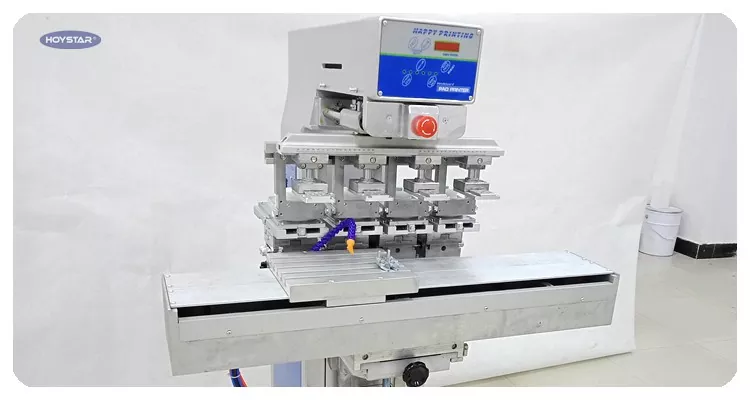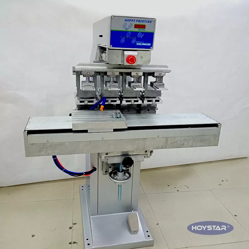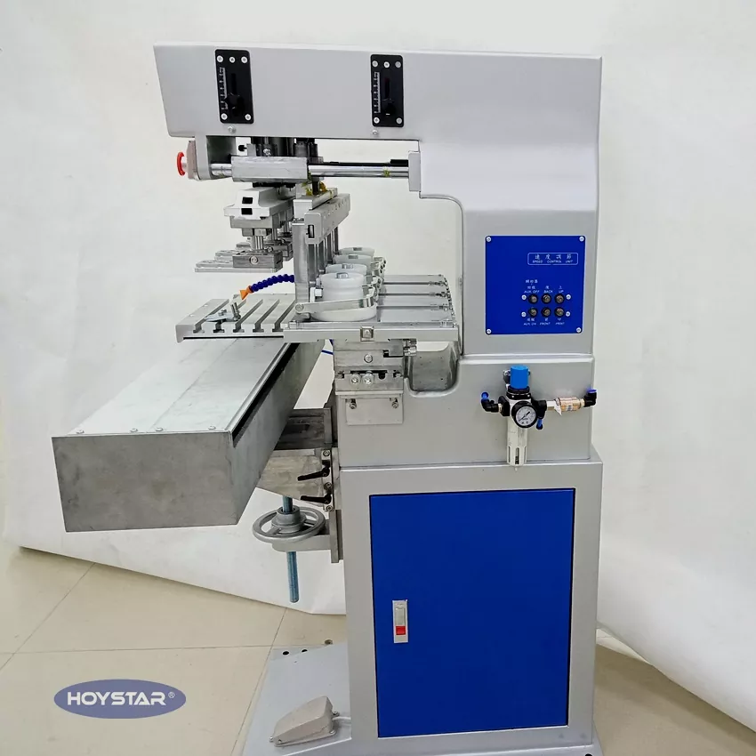 Този 4-цветен тампонен принтер HOYSTAR с работна маса за корици е високопроизводително и рентабилно печатно оборудване. Машината предлага удобно настройване, стабилна работа и добър печатен ефект. Машината осигурява стабилно качество на печат и е подходяща за печат на широка гама от елементи като електронни продукти, пластмасови черупки, хардуерни продукти, канцеларски материали, малки изкуства и занаяти, както и малки лога върху повърхността на подаръци и др. Може да отговори на различни изисквания за печат на клиента.