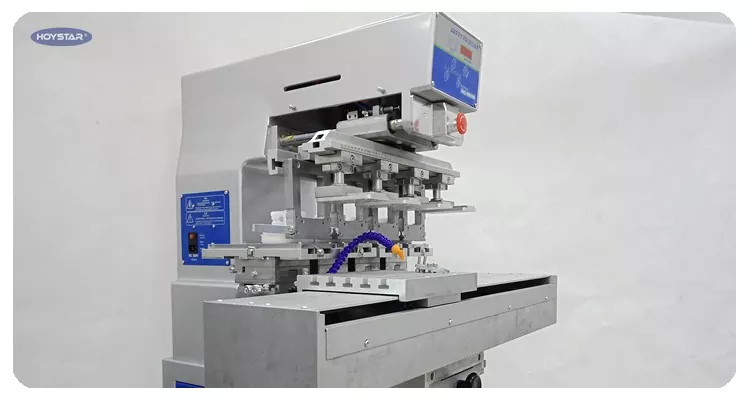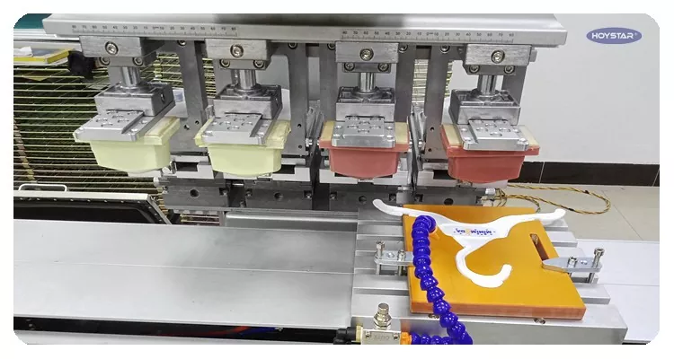 Горещи маркери: 4-цветен тампонен принтер със совалкова работна маса за капак