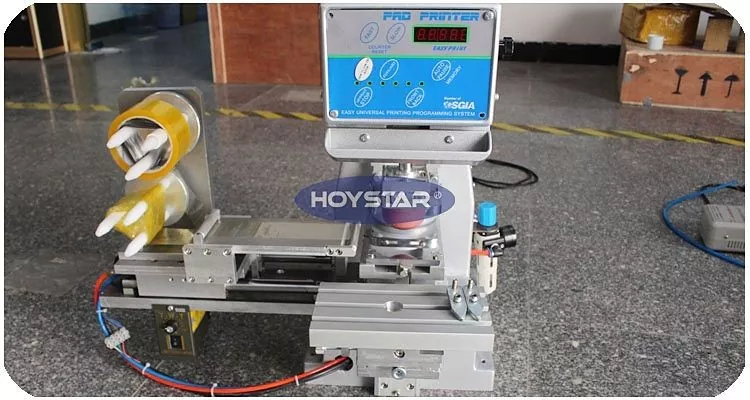 Като професионален производител в Китай бихме искали да ви предоставим високоефективен настолен 1 цветен тампонен принтер HOYSTAR със система за автоматично почистване. Тази машина за тампонен печат, оборудвана със затворена чаша за мастило и автоматична почистваща система, е идеално подходяща за печат върху широка гама от материали и продукти. Приложенията му включват пластмаси, хардуер, електроника, играчки, козметични опаковки, електрически артикули, подаръци и премии, капачки за бутилки, канцеларски материали, керамични артикули и промоционални реклами. Интегрираната автоматична система за почистване значително повишава ефективността чрез спестяване на време и опростяване на работата.
