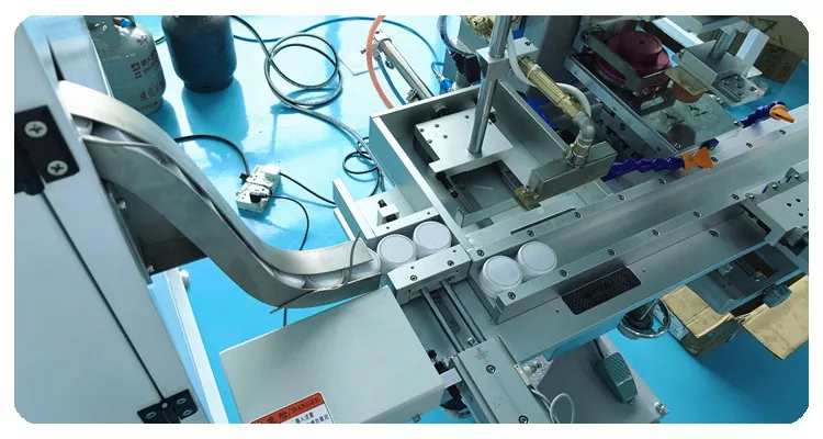 Напълно автоматичната 1 цветна тампонна машина за капачки за бутилки с автоматично зареждащо устройство