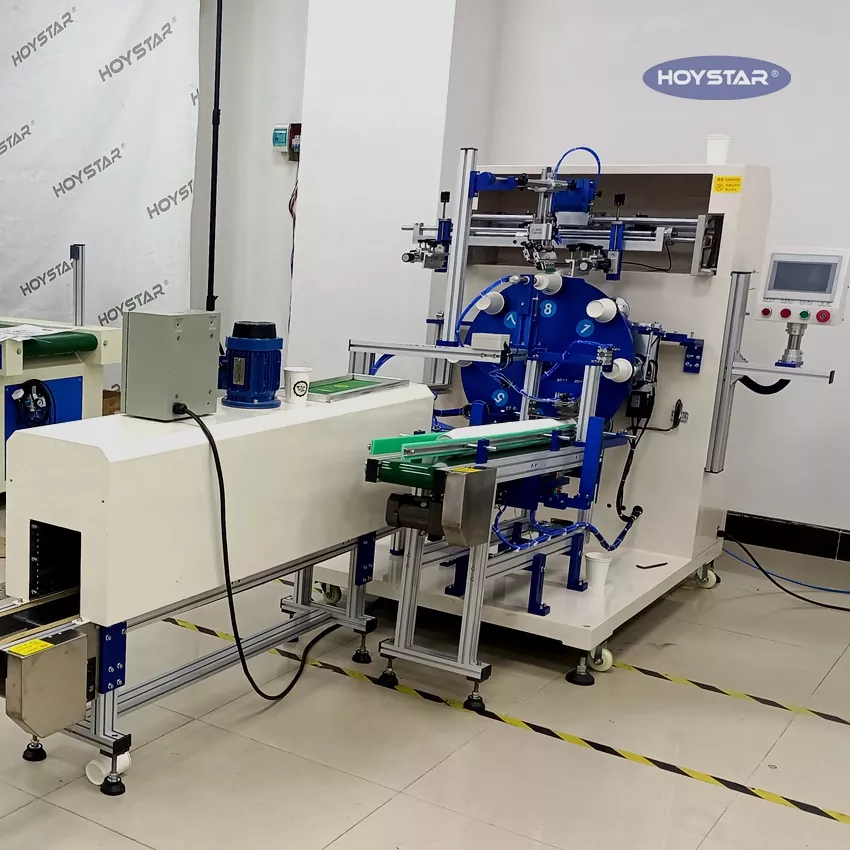 Тази напълно автоматична едноцветна цилиндрична ситопечатна машина HOYSTAR за PP/PET чаши, подходяща за печат с широка гама от видове чаши. Подходящо е за печат върху пластмасови чаши (като пластмасови чаши за студени напитки), чаши за чай с мляко (включително както хартиени, така и пластмасови варианти, често използвани в кетъринг индустрията), чаши за кафе, хартиени чаши, чаши и чаши за многократна употреба (екологични пластмасови чаши за многократна употреба).