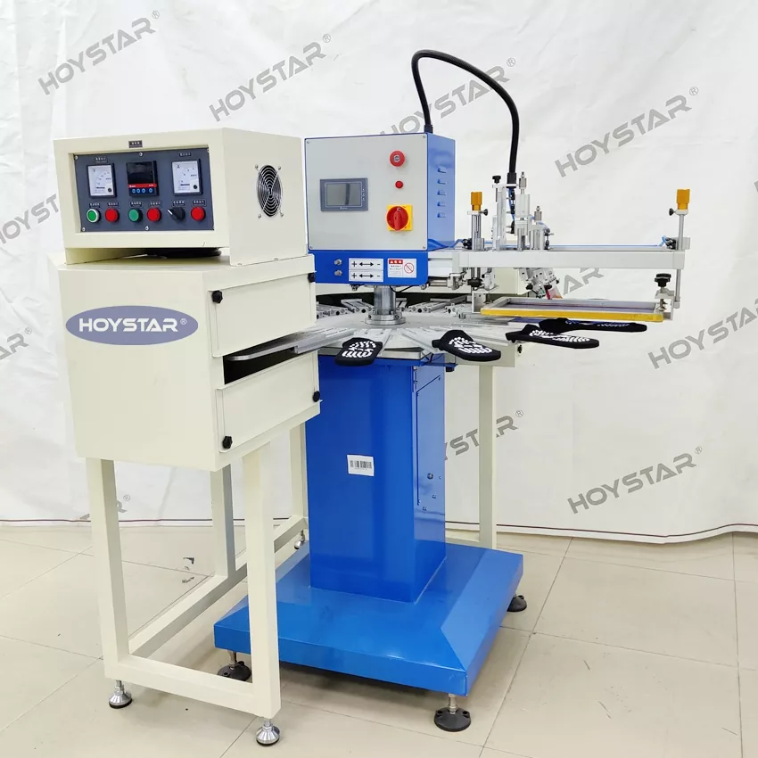 Като професионален производител в Китай, ние бихме искали да ви предоставим машина за копринен ситопечат с голям размер HOYSTAR с голям размер. Това идва с машина с 16 работни станции, подходяща за производство на голям обем. Разполага с усъвършенстван PLC и сензорен екран за управление, който може да отпечатва подметки и токчета на чорапи. Интегриран IR изсушаващ тунел осигурява ефективно изсъхване на силиций и мастило