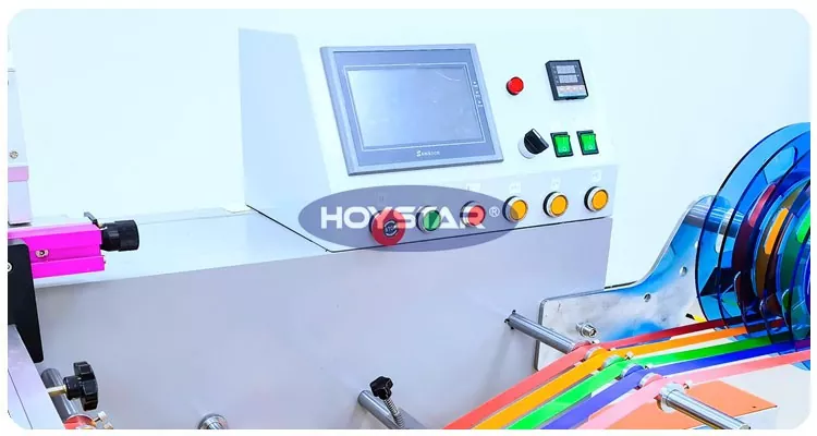 HOYSTAR е надежден производител и доставчик в Китай; Тази ситопечатна машина HOYSTAR Roll To Roll е предназначена за печат върху различни ленти. Режимът на двойна макара осигурява стабилно подаване и гладко производство. PLC управление със сензорен екран, удобен за потребителя интерфейс за безопасна, интуитивна работа. Двуслойната сушилня с циркулация на горещ въздух може да изсуши мастилото бързо и равномерно.