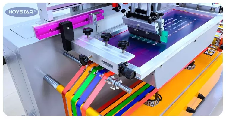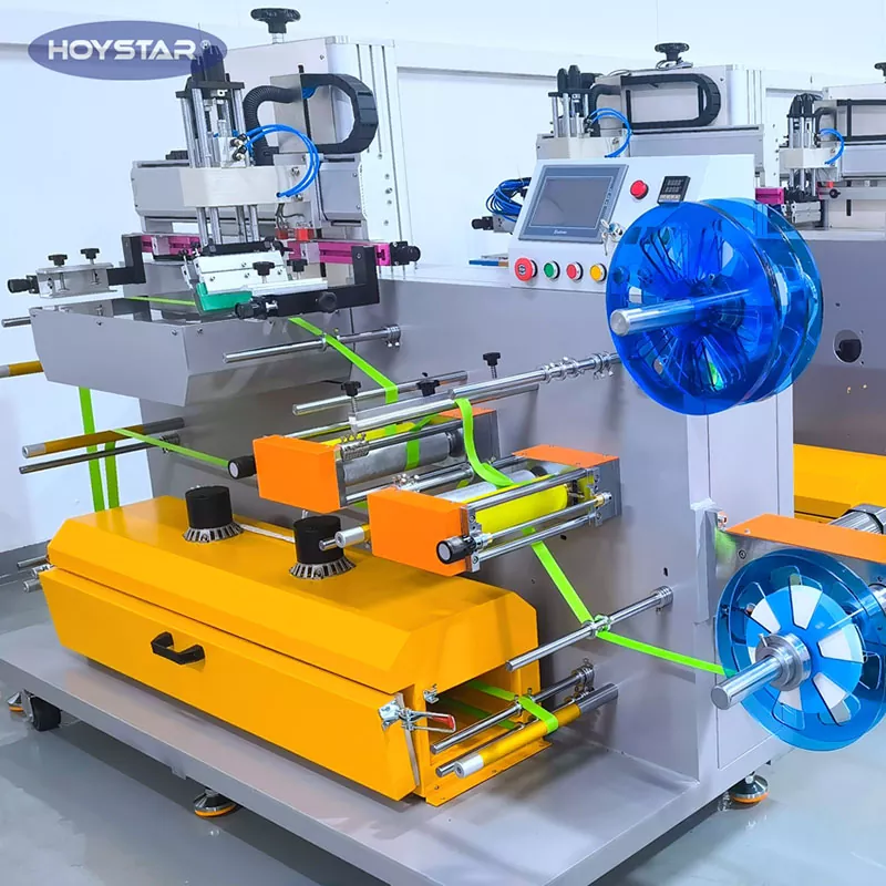 Като професионален производител в Китай, бихме искали да ви предоставим високоефективна машина за ситопечат HOYSTAR Roll To Roll. Нашите машини използват PLC и сензорен екран и се използват главно за печат на различни видове ленти. Те предлагат режим на двойна макара, за да осигурят по-стабилен печат и навиване, а рамката на печатащото сито е с пружина, което я прави подходяща за печат с различни видове мастило.