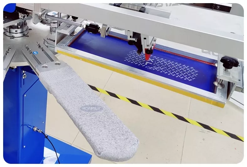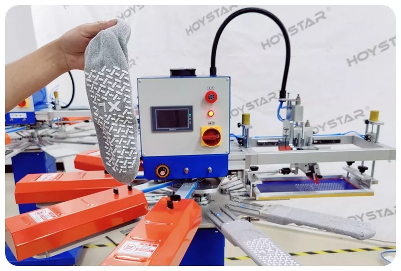 Като професионален производител в Китай, ние бихме искали да ви предоставим високо бърза ситопечатна машина HOYSTAR за чорапи. Нашите машини използват PLC и сензорен екран за управление и се използват главно за отпечатване на различни видове чорапи. Машината може да печата върху подметките и петите на чорапите и е оборудвана със сушилня, която може да изсуши добре силикона и мастилото.