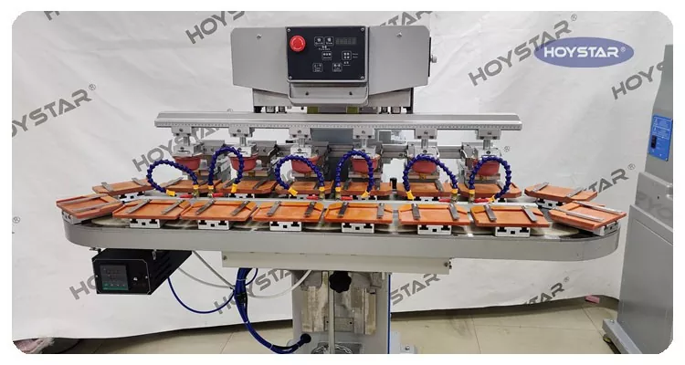 Като професионален производител и доставчик на шестцветен тампонен принтер в Китай с конвейерна работна маса, ние предоставяме на клиентите цялостни услуги за управление на проекти. Този шестцветен тампонен принтер HOYSTAR с конвейерна работна маса е високопроизводително и рентабилно печатно оборудване. Машината предлага удобна настройка, стабилна работа и добър печатен ефект. Машината, подходяща за печат на широка гама от индустрии и приложения, тя е идеално подходяща за печат върху електронни продукти, пластмасови корпуси, хардуерни компоненти, канцеларски материали, малки изкуства и занаяти, както и лога и графики върху подаръци, играчки и рекламни артикули.