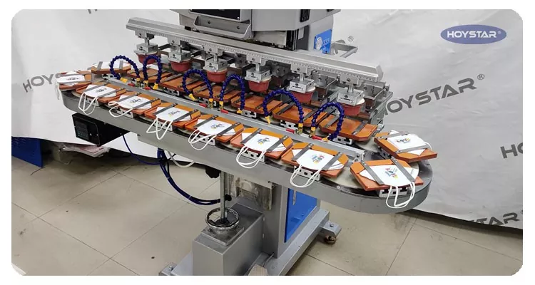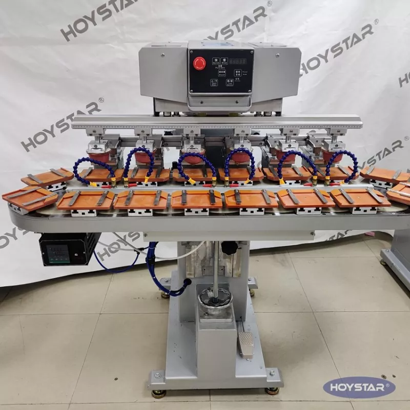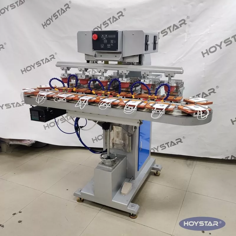 Горещи маркери: Шестцветен тампонен принтер с конвейерна работна маса, Китай, производител, доставчик, фабрика, персонализиран, високо качество